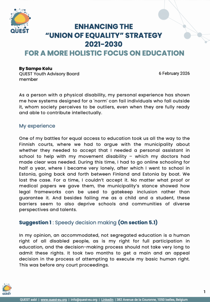 Sampo Kolu, our youngest advisory board member, has formally submitted his response to the European Commission’s consultation on “Enhancing the EU Strategy for the Rights of Persons with Disabilities.
