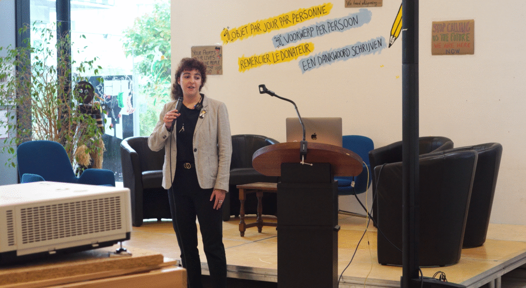 The conference took place in Anderlecht Expo, and was split into two parts : the first included keynote speeches, lively discussions with MEPs, and a presentation of results from each national group of young people. The afternoon was more focused on emotional expression through mediums like theatre of the oppressed and a documentary exploring the deeper roots of the climate crisis and the role of our economic system in driving it.